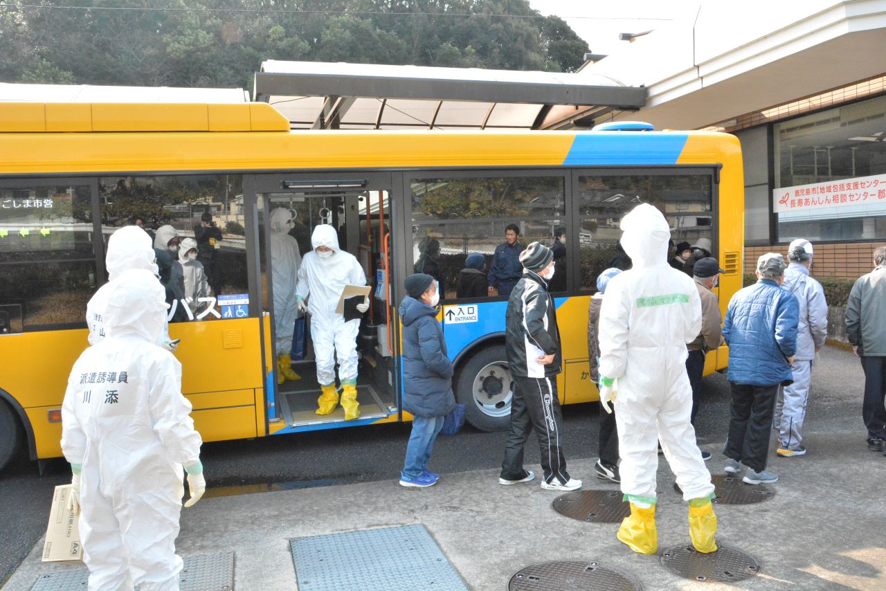 原子力災害対策重点区域となる郡山の一部地域では、住民の方々はマイカーとバス(自治会ごとの集合場所から)で、避難退域時検査場所(郡山総合運動場)を経由後、模擬避難所である郡山中央構造改善センターへ移動する避難訓練を実施しました。
